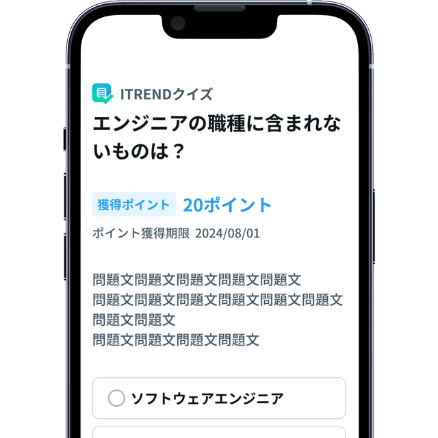 サイト内の「ITRENDクイズ」や「ITRENDアンケート」に回答することでポイントを獲得できます! ポイント数は異なるため、まずは試しやすいものから触れてみてください!